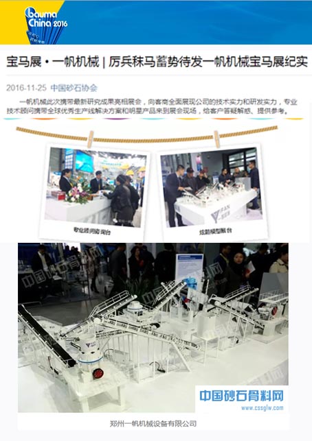 此外,本次一帆機械展會期間也受到了眾多媒體的關(guān)注,砂石骨料和破碎篩分行業(yè)的專業(yè)平臺也對一帆機械此次寶馬展上的表現(xiàn)給予稱贊,其中中國砂石協(xié)會網(wǎng)、中國砂石骨料網(wǎng)、中磚網(wǎng)等平臺也以文字和圖片形式對寶馬展上的一帆風(fēng)采進行了跟蹤報道。