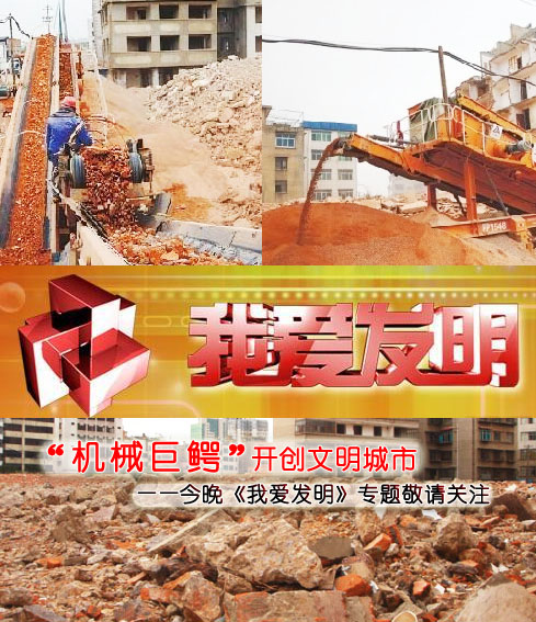 今晚18:55中央電視臺(tái)10頻道《我愛發(fā)明》欄目將為大家揭開建筑垃圾處理設(shè)備——移動(dòng)破碎站如何將建筑垃圾領(lǐng)上資源化發(fā)展的道路,并為您一一解讀一種可以把建筑垃圾一口一口吃掉并吐出“黃金”的設(shè)備是如何幫您實(shí)現(xiàn)投資致富的,這種高效環(huán)保、節(jié)能快捷的建筑垃圾處理設(shè)備的神秘面紗在今晚即將被揭開,敬請各行各業(yè)關(guān)注。
