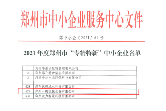 4、2021年8月,被認定為“鄭州市專精特新企業”。