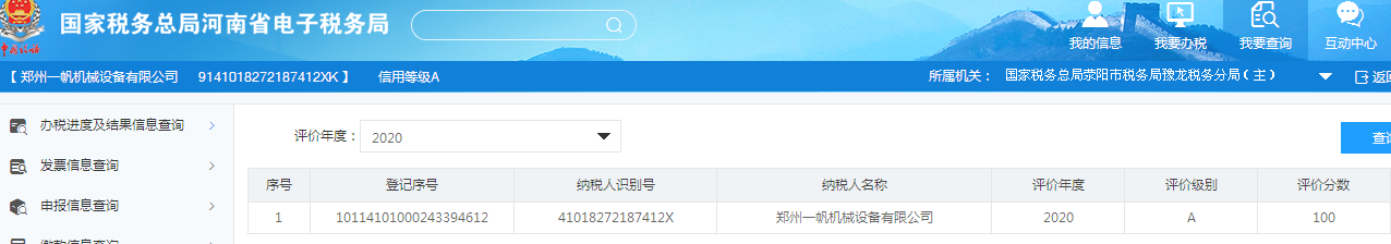 6、2021年5月,獲得稅務最高信用等級“納稅評價A級稱號”。