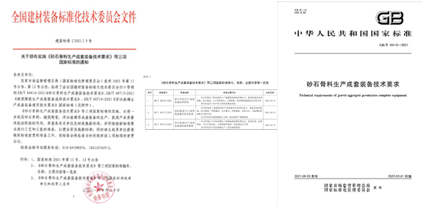 9、鄭州一帆作為主起草單位參與的《砂石骨料生產成套裝備技術要求》國家標準即將頒布實施。