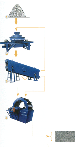 Regarding of detail condition, two kinds of techniques are usually adopted in producing manufactured sand, dry way and wet way. Both methods can produce high quality manufactured sand as concrete aggregate. Especially, the dry way can produce not only the manufactured sand used in SMA road surface, but also the powder used in asphalt concrete.